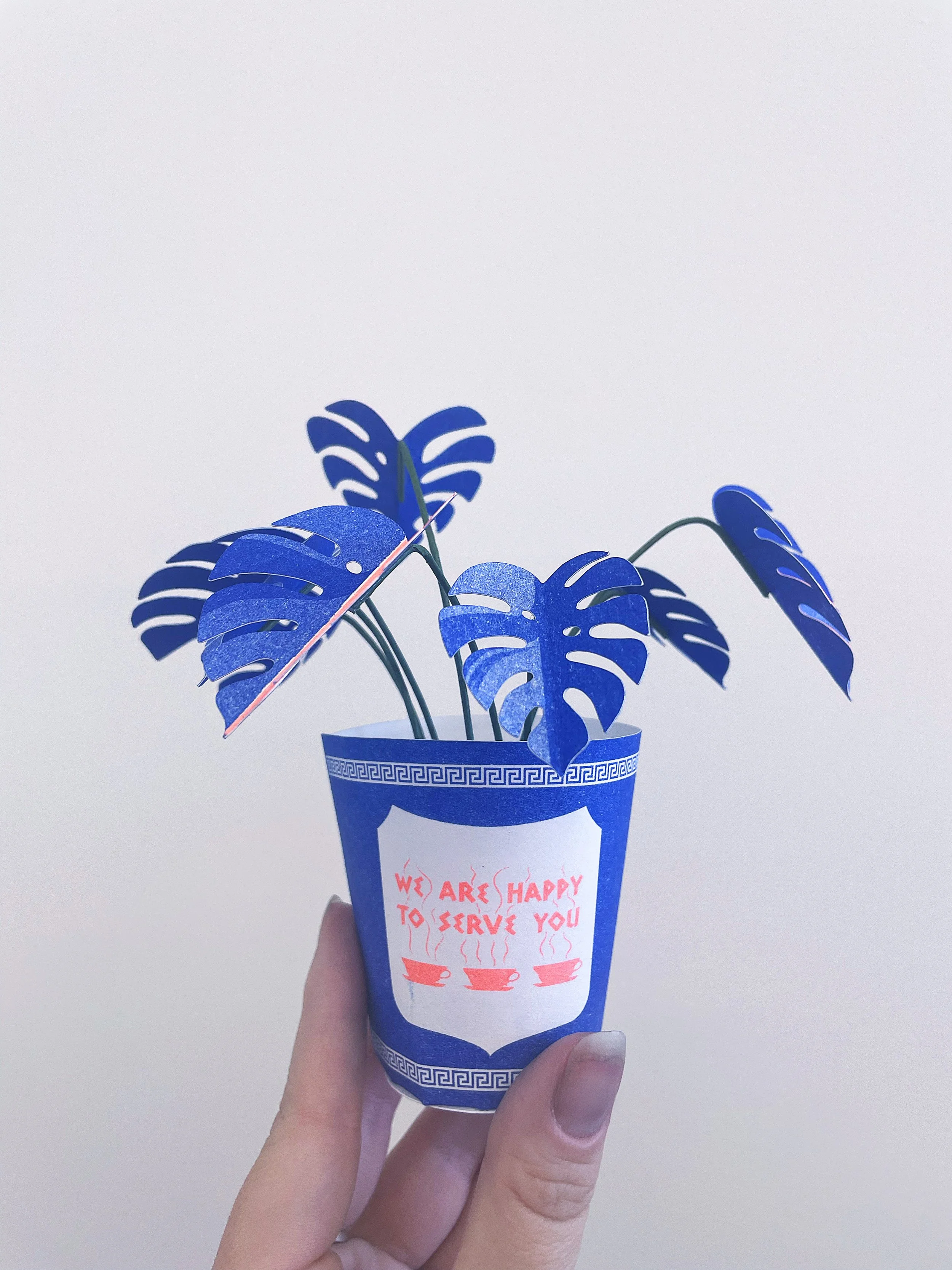 The leaves are cut and hand-assembled into paper plants—no two are alike!